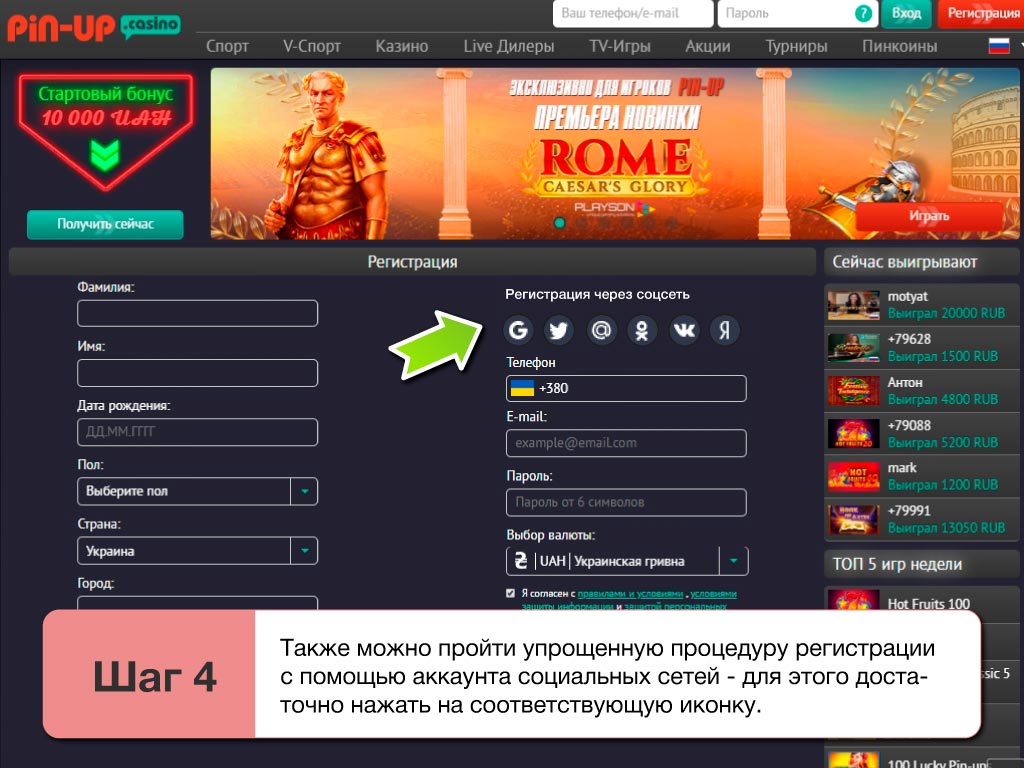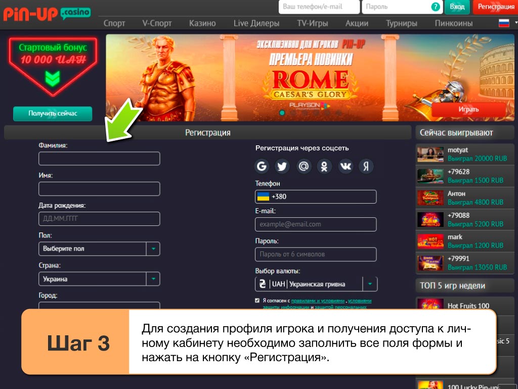 Чтобы начать играть на деньги в игровые автоматы, рулетки и прочие развлечения, или скачать на телефон Pin Up казино 2025 придется пройти регистрацию. Делается это максимально просто и быстро. Потратив всего несколько минут у пользователя, будет полноценный доступ к официальному сайту casino. В целом, чтобы зарегистрироваться тут также, как и в клубе Максбет 2025 нужно сделать следующее: